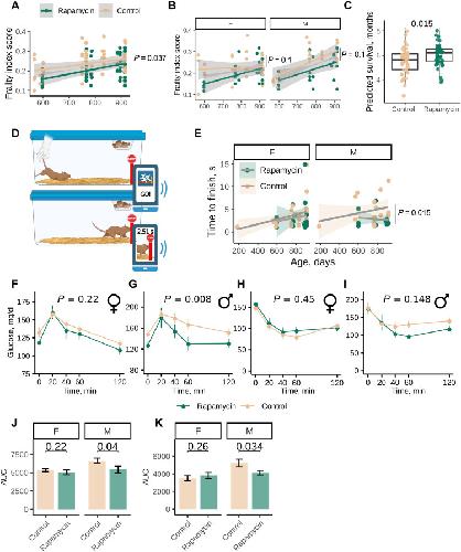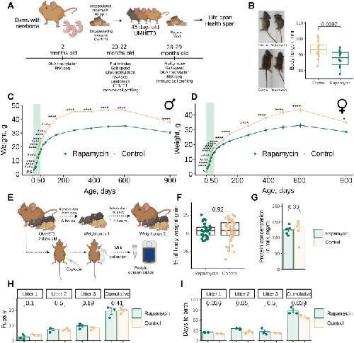 Rapamycin treatment during development extends life span and health span of male mice and Daphnia magna., Shindyapina AV, Cho Y, Kaya A, Tyshkovskiy A, Castro JP, Deik A, Gordevicius J, Poganik JR, Clish CB, Horvath S, Peshkin L, Gladyshev VN., Sci Adv. September 16, 2022; 8 (37): eabo5482. |