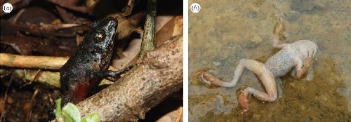 Germ tube mediated invasion of Batrachochytrium dendrobatidis in amphibian skin is host dependent., Van Rooij P, Martel A, D'Herde K, Brutyn M, Croubels S, Ducatelle R, Haesebrouck F, Pasmans F., PLoS One. January 1, 2012; 7 (7): e41481. |