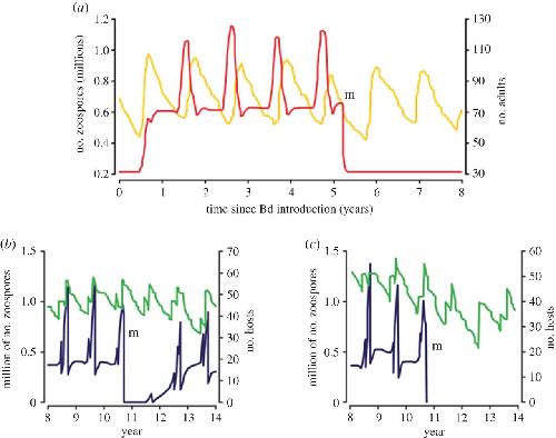 Mitigating amphibian chytridiomycoses in nature., Garner TW, Schmidt BR, Martel A, Pasmans F, Muths E, Cunningham AA, Weldon C, Fisher MC, Bosch J., Philos Trans R Soc Lond B Biol Sci. December 5, 2016; 371 (1709): |