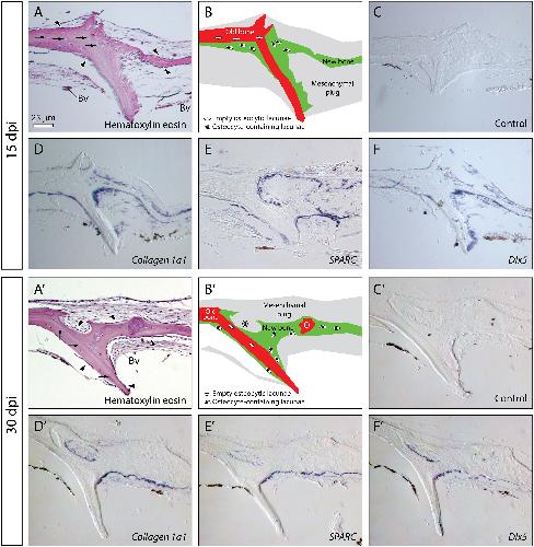 Evolution of the vertebrate bone matrix: an expression analysis of the network forming collagen paralogues in amphibian osteoblasts. , Aldea D, Hanna P, Munoz D, Espinoza J, Torrejon M , Sachs L , Buisine N , Oulion S, Escriva H, Marcellini S ., J Exp Zool B Mol Dev Evol. September 1, 2013; 320 (6): 375-84.