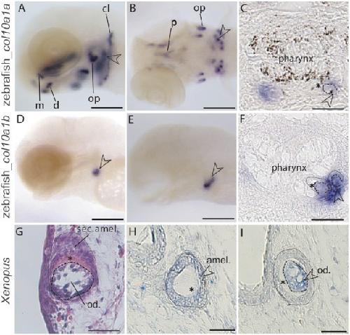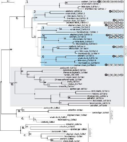 Skeletal Mineralization in Association with Type X Collagen Expression Is an Ancestral Feature for Jawed Vertebrates. , Debiais-Thibaud M, Simion P, Ventéo S, Muñoz D, Marcellini S , Mazan S, Haitina T., Mol Biol Evol. October 1, 2019; 36 (10): 2265-2276.