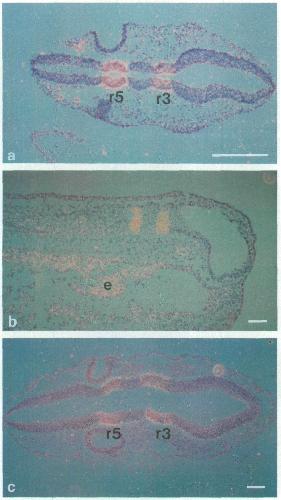 Conserved segmental expression of Krox-20 in the vertebrate hindbrain and its relationship to lineage restriction., Nieto MA, Bradley LC, Wilkinson DG., Development. January 1, 1991; Suppl 2 59-62.