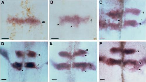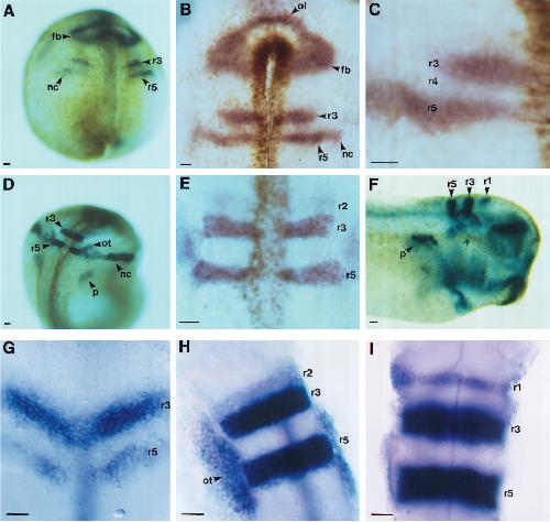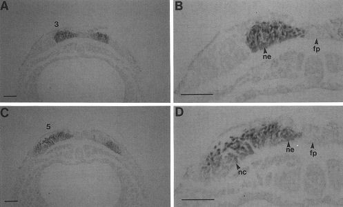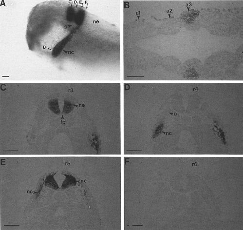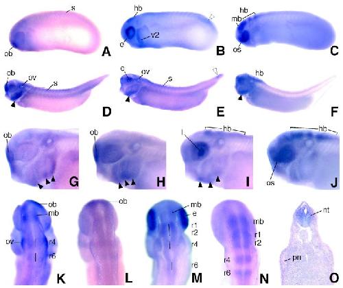 Expression of truncated Sek-1 receptor tyrosine kinase disrupts the segmental restriction of gene expression in the Xenopus and zebrafish hindbrain., Xu Q, Alldus G, Holder N, Wilkinson DG., Development. December 1, 1995; 121 (12): 4005-16.