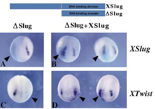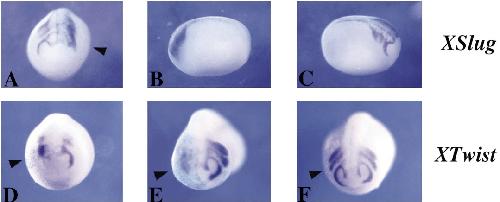 Relationship between gene expression domains of Xsnail, Xslug, and Xtwist and cell movement in the prospective neural crest of Xenopus. , Linker C, Bronner-Fraser M , Mayor R ., Dev Biol. August 15, 2000; 224 (2): 215-25.