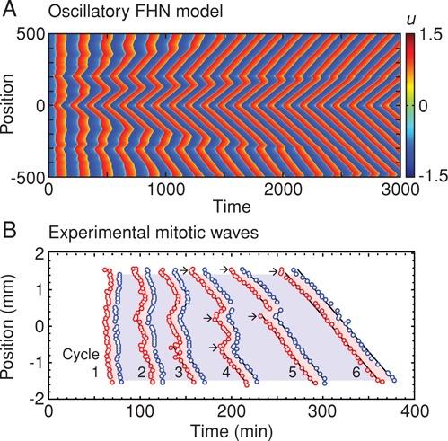 Mitotic trigger waves and the spatial coordination of the Xenopus cell cycle., Chang JB, Ferrell JE., Nature. August 29, 2013; 500 (7464): 603-7.
