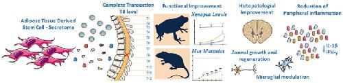 Adipose tissue derived stem cell secretome induces motor and histological gains after complete spinal cord injury in Xenopus laevis and mice. , Assunção-Silva RC, Pinho A, Cibrão JR, Pereira IM, Monteiro S, Silva NA, Campos J, Rebelo AL, Schlosser G , Pinto L, Pandit A, Salgado AJ., J Tissue Eng. January 1, 2024; 15 20417314231203824.