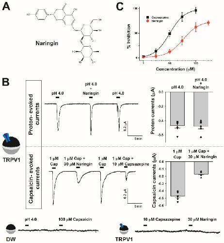 Antioxidative and Analgesic Effects of Naringin through Selective Inhibition of Transient Receptor Potential Vanilloid Member 1. , Eom S, Lee BB, Lee S, Park Y, Yeom HD, Kim TH, Nam SH, Lee JH ., Antioxidants (Basel). December 28, 2021; 11 (1):