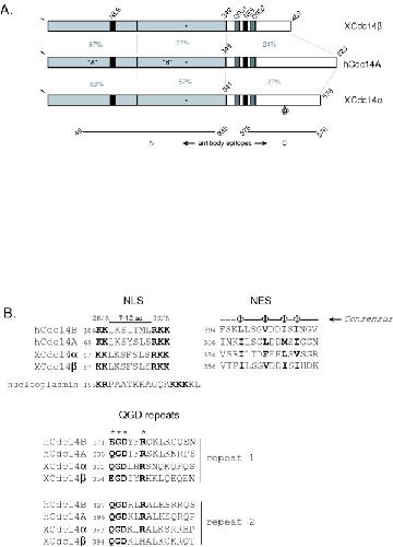 Xenopus Cdc14 alpha/beta are localized to the nucleolus and centrosome and are required for embryonic cell division. , Kaiser BK, Nachury MV, Gardner BE, Jackson PK ., BMC Cell Biol. July 13, 2004; 5 27.