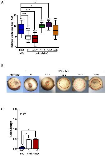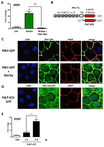 The PTK7 and ROR2 Protein Receptors Interact in the Vertebrate WNT/Planar Cell Polarity (PCP) Pathway. , Martinez S, Scerbo P , Giordano M, Daulat AM, Lhoumeau AC, Thomé V, Kodjabachian L , Borg JP ., J Biol Chem. December 18, 2015; 290 (51): 30562-72.