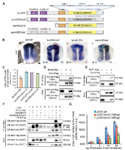 Barhl2 maintains T cell factors as repressors and thereby switches off the Wnt/ β-Catenin response driving Spemann organizer formation. , Sena E, Rocques N, Borday C, Muhamad Amin HS, Parain K , Sitbon D , Chesneau A, Durand BC ., Development. May 22, 2019; 146 (10):