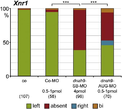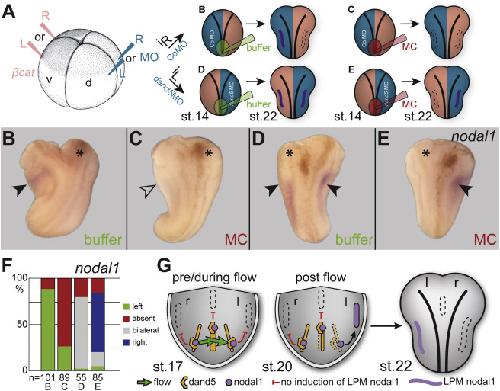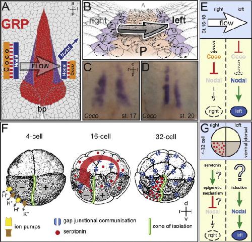Cilia-driven leftward flow determines laterality in Xenopus., Schweickert A, Weber T, Beyer T, Vick P, Bogusch S, Feistel K, Blum M., Curr Biol. January 9, 2007; 17 (1): 60-6. |