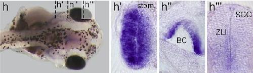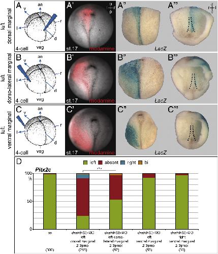 The homeobox gene Pitx2: mediator of asymmetric left-right signaling in vertebrate heart and gut looping., Campione M, Steinbeisser H, Schweickert A, Deissler K, van Bebber F, Lowe LA, Nowotschin S, Viebahn C, Haffter P, Kuehn MR, Blum M., Development. March 1, 1999; 126 (6): 1225-34. |