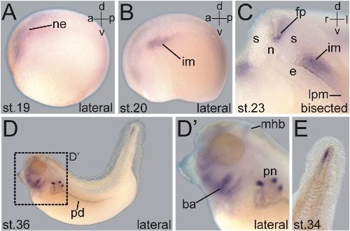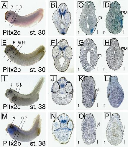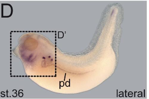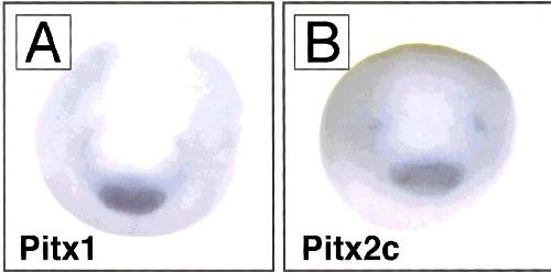 Differential gene expression of Xenopus Pitx1, Pitx2b and Pitx2c during cement gland, stomodeum and pituitary development., Schweickert A, Steinbeisser H, Blum M., Mech Dev. September 1, 2001; 107 (1-2): 191-4. |