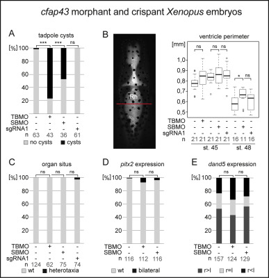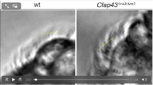 CFAP43 modulates ciliary beating in mouse and Xenopus., Rachev E, Schuster-Gossler K, Fuhl F, Ott T, Tveriakhina L, Beckers A, Hegermann J, Boldt K, Mai M, Kremmer E, Ueffing M, Blum M, Gossler A., Dev Biol. March 15, 2020; 459 (2): 109-125. |
