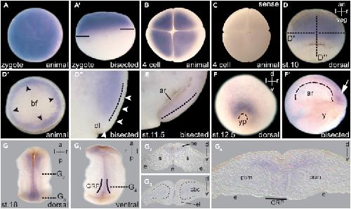 Symmetry breakage in the frog Xenopus: role of Rab11 and the ventral-right blastomere., Tingler M, Ott T, Tözser J, Kurz S, Getwan M, Tisler M, Schweickert A, Blum M., Genesis. June 1, 2014; 52 (6): 588-99. |