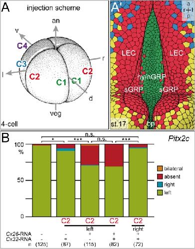 Connexin26-mediated transfer of laterality cues in Xenopus., Beyer T, Thumberger T, Schweickert A, Blum M., Biol Open. May 15, 2012; 1 (5): 473-81. |