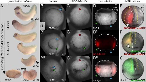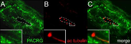 Ciliary and non-ciliary expression and function of PACRG during vertebrate development., Thumberger T, Hagenlocher C, Tisler M, Beyer T, Tietze N, Schweickert A, Feistel K, Blum M., Cilia. August 1, 2012; 1 (1): 13. |