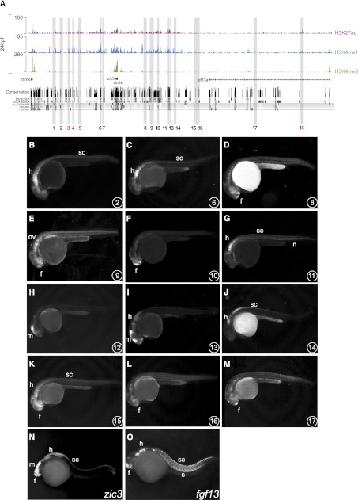A functional survey of the enhancer activity of conserved non-coding sequences from vertebrate Iroquois cluster gene deserts. , de la Calle-Mustienes E , Feijóo CG, Manzanares M, Tena JJ, Rodríguez-Seguel E, Letizia A, Allende ML, Gómez-Skarmeta JL ., Genome Res. August 1, 2005; 15 (8): 1061-72.