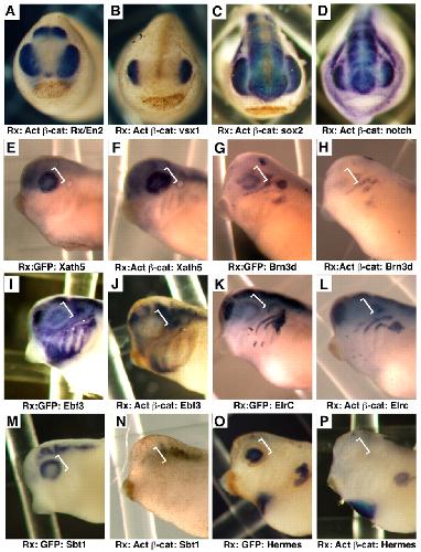 A directional Wnt/beta-catenin-Sox2-proneural pathway regulates the transition from proliferation to differentiation in the Xenopus retina., Agathocleous M, Iordanova I, Willardsen MI, Xue XY, Vetter ML, Harris WA, Moore KB., Development. October 1, 2009; 136 (19): 3289-99. |