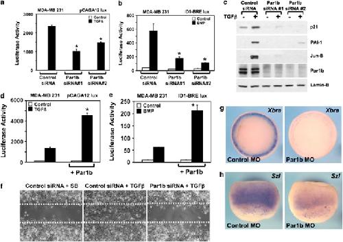 Integration of TGF-beta and Ras/MAPK signaling through p53 phosphorylation., Cordenonsi M, Montagner M, Adorno M, Zacchigna L, Martello G, Mamidi A, Soligo S, Dupont S, Piccolo S., Science. February 9, 2007; 315 (5813): 840-3. |