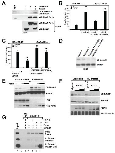 FAM/USP9x, a deubiquitinating enzyme essential for TGFbeta signaling, controls Smad4 monoubiquitination., Dupont S, Mamidi A, Cordenonsi M, Montagner M, Zacchigna L, Adorno M, Martello G, Stinchfield MJ, Soligo S, Morsut L, Inui M, Moro S, Modena N, Argenton F, Newfeld SJ, Piccolo S., Cell. January 9, 2009; 136 (1): 123-35. |