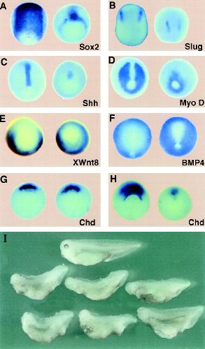 Patterning by genes expressed in Spemann''s organizer., De Robertis EM, Kim S, Leyns L, Piccolo S, Bachiller D, Agius E, Belo JA, Yamamoto A, Hainski-Brousseau A, Brizuela B, Wessely O, Lu B, Bouwmeester T., Cold Spring Harb Symp Quant Biol. January 1, 1997; 62 169-75. |
