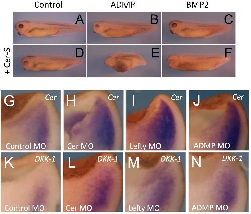 The head inducer Cerberus is a multifunctional antagonist of Nodal, BMP and Wnt signals., Piccolo S, Agius E, Leyns L, Bhattacharyya S, Grunz H, Bouwmeester T, De Robertis EM., Nature. February 25, 1999; 397 (6721): 707-10. |