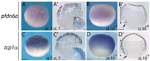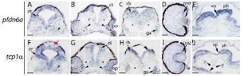 Comparative expression analysis of pfdn6a and tcp1α during Xenopus development. , Marracci S , Martini D, Giannaccini M, Giudetti G, Dente L , Andreazzoli M ., Int J Dev Biol. January 1, 2015; 59 (4-6): 235-40.