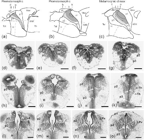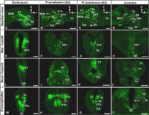 Characterization of the hypothalamus of Xenopus laevis during development. I. The alar regions., Domínguez L, Morona R, González A, Moreno N., J Comp Neurol. March 1, 2013; 521 (4): 725-59.