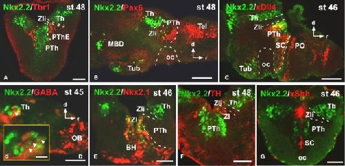Ontogenetic distribution of the transcription factor nkx2.2 in the developing forebrain of Xenopus laevis., Domínguez L, González A, Moreno N., Front Neuroanat. March 2, 2011; 5 11.