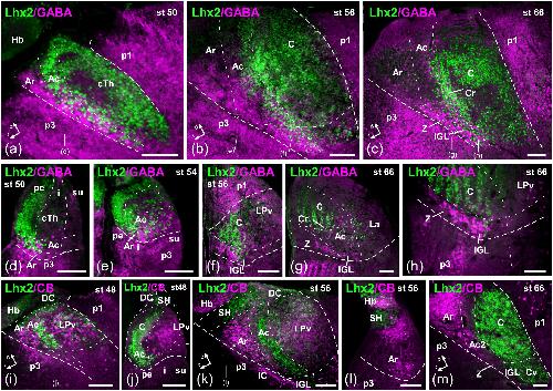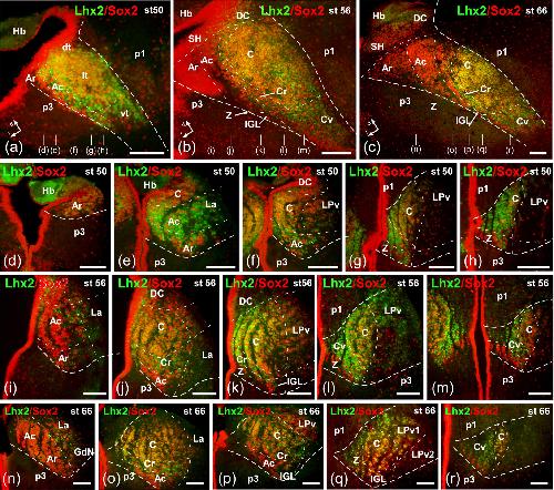 Amphibian thalamic nuclear organization during larval development and in the adult frog Xenopus laevis: Genoarchitecture and hodological analysis., Morona R, Bandín S, López JM, Moreno N, González A., J Comp Neurol. October 1, 2020; 528 (14): 2361-2403.