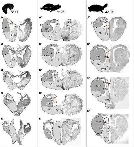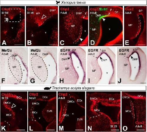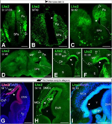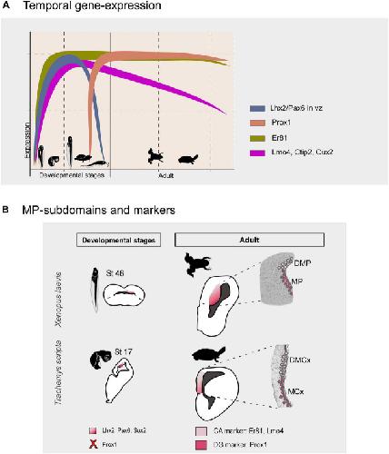 Development of subdomains in the medial pallium of Xenopus laevis and Trachemys scripta: Insights into the anamniote-amniote transition., Jiménez S, Moreno N., Front Neuroanat. 16 1039081.