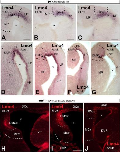 LIM-homeodomain genes as territory markers in the brainstem of adult and developing Xenopus laevis., Moreno N, Bachy I, Rétaux S, González A., J Comp Neurol. May 9, 2005; 485 (3): 240-54.