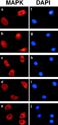 Nuclear export of MAP kinase ( ERK) involves a MAP kinase kinase (MEK)-dependent active transport mechanism. , Adachi M, Fukuda M, Nishida E ., J Cell Biol. March 6, 2000; 148 (5): 849-56.
