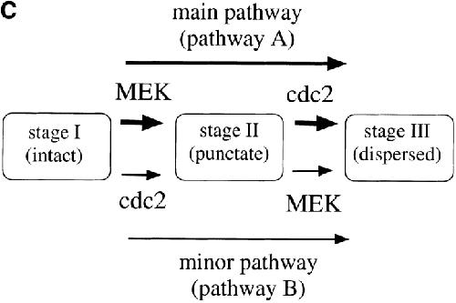 MEK and Cdc2 kinase are sequentially required for Golgi disassembly in MDCK cells by the mitotic Xenopus extracts. , Kano F, Takenaka K, Yamamoto A, Nagayama K, Nishida E , Murata M., J Cell Biol. April 17, 2000; 149 (2): 357-68.