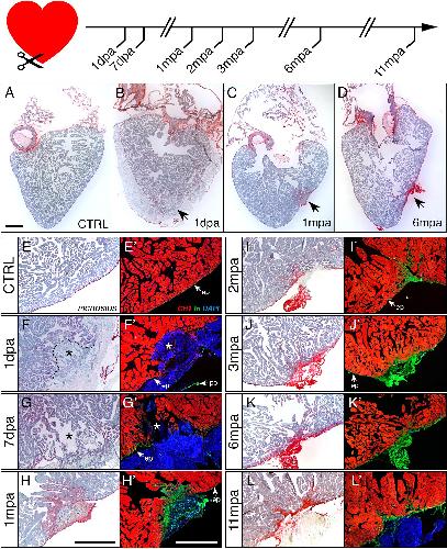 Persistent fibrosis, hypertrophy and sarcomere disorganisation after endoscopy-guided heart resection in adult Xenopus., Marshall L, Vivien C, Girardot F, Péricard L, Demeneix BA, Coen L, Chai N., PLoS One. January 1, 2017; 12 (3): e0173418.