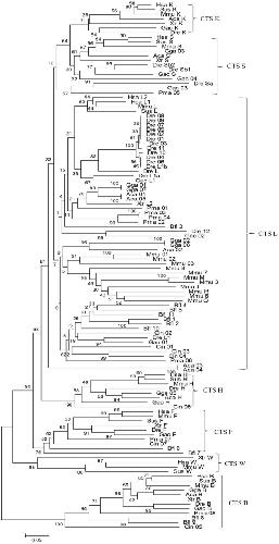 Evolutionary History of Cathepsin L (L-like) Family Genes in Vertebrates., Zhou J, Zhang YY, Li QY, Cai ZH., Int J Biol Sci. July 14, 2015; 11 (9): 1016-25. |