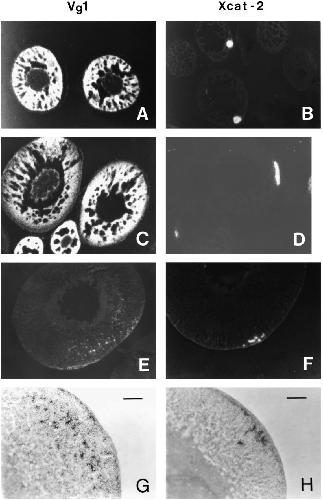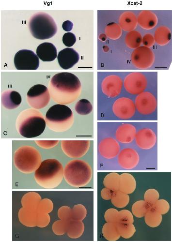 Patterns of localization and cytoskeletal association of two vegetally localized RNAs, Vg1 and Xcat-2., Forristall C, Pondel M, Chen L, King ML., Development. January 1, 1995; 121 (1): 201-8. |