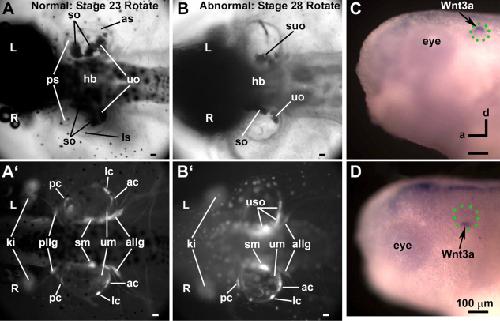 Embryological manipulations in the developing Xenopus inner ear reveal an intrinsic role for Wnt signaling in dorsal-ventral patterning., Forristall CA, Stellabotte F, Castillo A, Collazo A., Dev Dyn. October 1, 2014; 243 (10): 1262-74. |