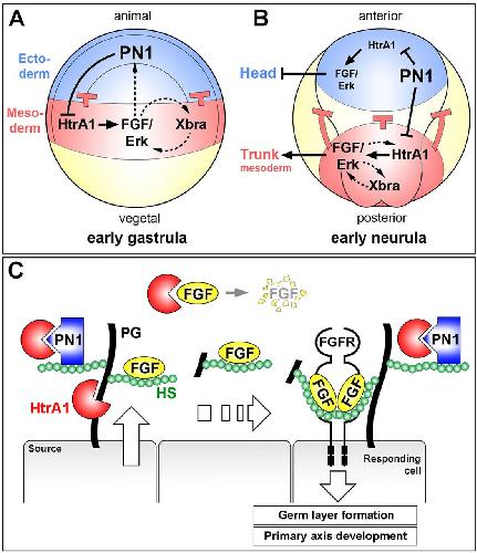 The serpin PN1 is a feedback regulator of FGF signaling in germ layer and primary axis formation., Acosta H, Iliev D, Grahn TH, Gouignard N, Maccarana M, Griesbach J, Herzmann S, Sagha M, Climent M, Pera EM., Development. March 15, 2015; 142 (6): 1146-58. |