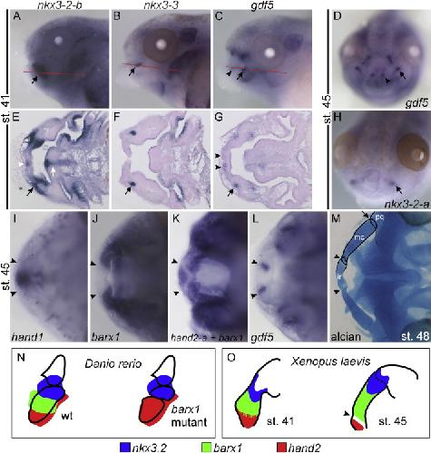 A gene expression map of the larval Xenopus laevis head reveals developmental changes underlying the evolution of new skeletal elements. , Square T , Jandzik D, Cattell M, Coe A, Doherty J, Medeiros DM ., Dev Biol. January 15, 2015; 397 (2): 293-304.