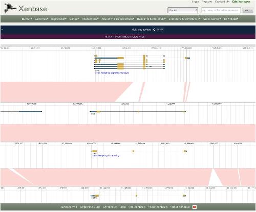Genome evolution in the allotetraploid frog Xenopus laevis. , Session AM , Uno Y , Kwon T , Chapman JA, Toyoda A, Takahashi S , Fukui A , Hikosaka A , Suzuki A , Kondo M, van Heeringen SJ, Quigley I , Heinz S, Ogino H , Ochi H , Hellsten U, Lyons JB, Simakov O, Putnam N, Stites J, Kuroki Y, Tanaka T, Michiue T , Watanabe M, Bogdanovic O, Lister R, Georgiou G, Paranjpe SS, van Kruijsbergen I, Shu S, Carlson J, Kinoshita T, Ohta Y, Mawaribuchi S, Jenkins J, Grimwood J, Schmutz J, Mitros T, Mozaffari SV, Suzuki Y, Haramoto Y, Yamamoto TS , Takagi C, Heald R , Miller K, Haudenschild C, Kitzman J , Nakayama T , Izutsu Y , Robert J , Fortriede J , Burns K , Lotay V , Karimi K , Yasuoka Y , Dichmann DS , Flajnik MF , Houston DW , Shendure J, DuPasquier L , Vize PD , Zorn AM , Ito M, Marcotte EM , Wallingford JB , Ito Y, Asashima M , Ueno N , Matsuda Y, Veenstra GJ , Fujiyama A, Harland RM , Taira M , Rokhsar DS ., Nature. October 20, 2016; 538 (7625): 336-343.