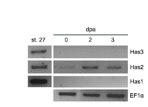 Early requirement of Hyaluronan for tail regeneration in Xenopus tadpoles., Contreras EG, Gaete M, Sánchez N, Carrasco H, Larraín J., Development. September 1, 2009; 136 (17): 2987-96. |