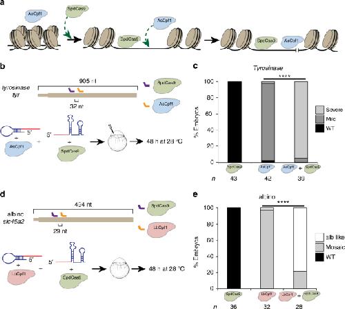 CRISPR-Cpf1 mediates efficient homology-directed repair and temperature-controlled genome editing., Moreno-Mateos MA, Fernandez JP, Rouet R, Vejnar CE, Lane MA, Mis E, Khokha MK, Doudna JA, Giraldez AJ., Nat Commun. December 8, 2017; 8 (1): 2024. |