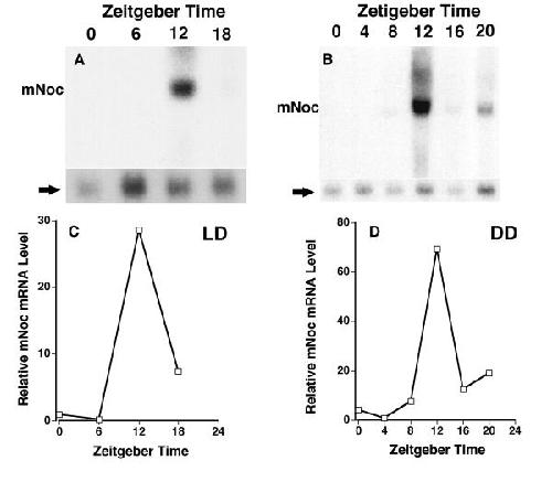 Identification of a novel vertebrate circadian clock-regulated gene encoding the protein nocturnin. , Green CB , Besharse JC ., Proc Natl Acad Sci U S A. December 10, 1996; 93 (25): 14884-8.
