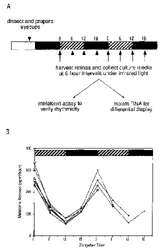 Rhythmic regulation of retinal melatonin: metabolic pathways, neurochemical mechanisms, and the ocular circadian clock. , Cahill GM, Grace MS, Besharse JC ., Cell Mol Neurobiol. October 1, 1991; 11 (5): 529-60.