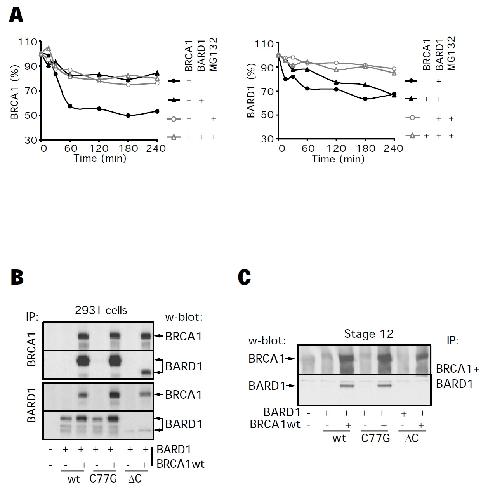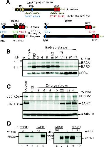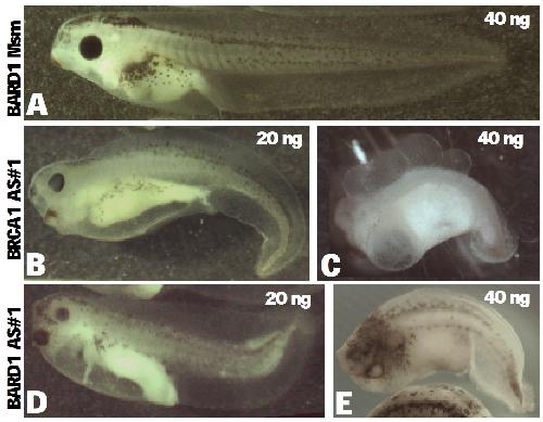 Functional communication between endogenous BRCA1 and its partner, BARD1, during Xenopus laevis development., Joukov V, Chen J, Fox EA, Green JB, Livingston DM., Proc Natl Acad Sci U S A. October 9, 2001; 98 (21): 12078-83.