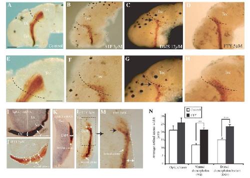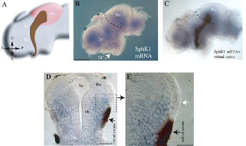 A role for S1P signalling in axon guidance in the Xenopus visual system., Strochlic L, Dwivedy A, van Horck FP, Falk J, Holt CE., Development. January 1, 2008; 135 (2): 333-42. |