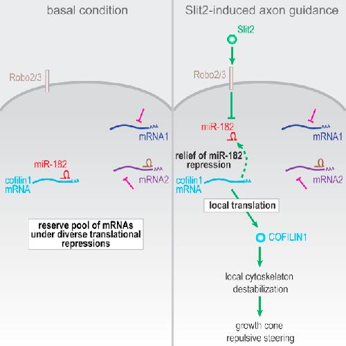 miR-182 Regulates Slit2-Mediated Axon Guidance by Modulating the Local Translation of a Specific mRNA., Bellon A, Iyer A, Bridi S, Lee FCY, Ovando-Vázquez C, Corradi E, Longhi S, Roccuzzo M, Strohbuecker S, Naik S, Sarkies P, Miska E, Abreu-Goodger C, Holt CE, Baudet ML., Cell Rep. January 31, 2017; 18 (5): 1171-1186. |