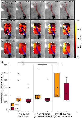 Rapid changes in tissue mechanics regulate cell behaviour in the developing embryonic brain., Thompson AJ, Pillai EK, Dimov IB, Foster SK, Holt CE, Franze K., Elife. January 15, 2019; 8 |